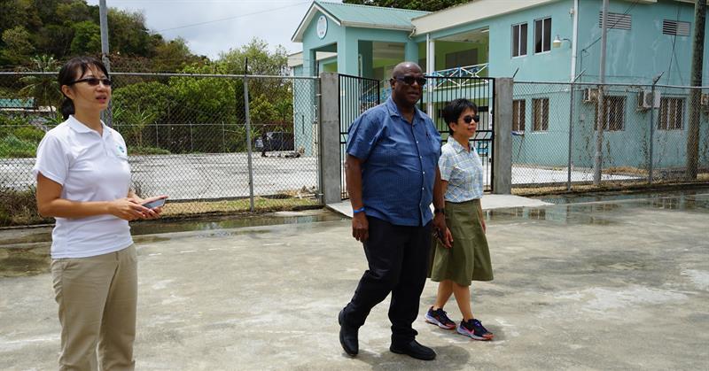 During the visit, Senior Minister Stephenson King and Her Excellency Nicole Su toured four CDP-funded projects: the Agard Playing Field, Morne Du Don Retaining Walls, the Chase Gardens/Carellie Human Resource Development Centre (including upgrades to the facility), and the current Carellie Park.